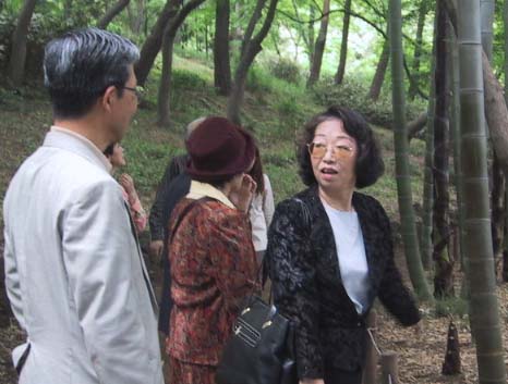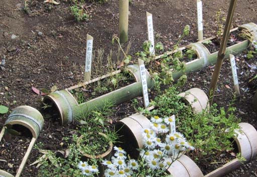 もと岩崎邸の庭園であったというこの「殿ケ谷戸庭園」は、駅から石を投げれば届く距離なのに、その喧噪から完全に遮断された別世界だ。こんなところにこんな風流を楽しめる 場所を作れる財閥の金力に感心させられる一方で、道ばたの草花にも愛着を注ぎ、孟宗竹の風流な盆栽にする心は面白いと思う。30分で十分に一巡りできるといわれていたが、気が付いてみると、もう1時間半近くが過ぎようとしていた。これは我々が年をとったための興味の変化を象徴しているのではというのが一行の一致した感想であった。 |