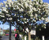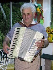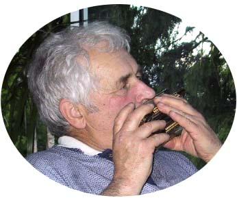 saleは社会によく根付いている感じがする。右の写真はカナダの国花dogwoodで 「はなみづき」の一種だが、花も葉もはるかに重量感がある。ちょうどサクラが白く満開になった感じで、それを葉っぱが支えている。今、カナダのどこにいても目に付く。その下の猫(?)は、やはりHladikさんのサンルームのガラス窓に置かれたステンドグラスのような作品。ガラス越しに裏庭が見えるが、青いシートに覆われているのはレジャー用のボート、そlの横は道具用の小屋。実はその右の見えないところに、その6倍ほどの作業小屋がある。この右の杉は 高さが60mにもなり、かなりの老木で、強風などで母屋側に倒れる危険があるが、ご主人のお気に入りとあっては、そう簡単に切り倒すわけにもいかないようであった。今度はHorst氏の蒐集癖と ドイツ的国民性の見本と考えられるのは、楽器とライフル銃だろう。彼が吹いているのは6つが1つになったハーモニカである。軸を中心に放射状にセットされた6つのハーモニカは私も吹かせてもらったが、少しずつ調子が異なるものの組み合わせで、どんな 音調の曲もこなせる。アコーディオンもボタンのたくさんある高級品、これでドイツ舞曲をやるから堂に入ったもの。ライフルも肩にズシッとくる重量感がある。ドイツ系のHorstさんは生粋のイギリス人の血を引くMargaretさんに英語の点では一歩譲る。食事をしていて、料理がやや辛目なのをHorstさんがsharpと言うと、すぐにMargaretさんがspicyと言い直す。我々日本人を話題にしていて彼がskinny(やせている)という言葉を使うと 、slimと言いなさいとたしなめるといった具合である。こういう場面に接すると、英語で苦労するのは日本人ばかりではないという安堵感、彼女の英国人としてもプライドと、女性上位はやっぱり世界的なのかと思う。 |