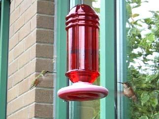 ここはMargaretさんのお気に入りの場所でもあるというので彼女も同じホテルに宿泊してガイド役をしてくださった。1階のソファの置かれたロビーのガラス越しに、赤い妙な筒がぶら下がっていた。彼女の説明では、ハチドリ(humming