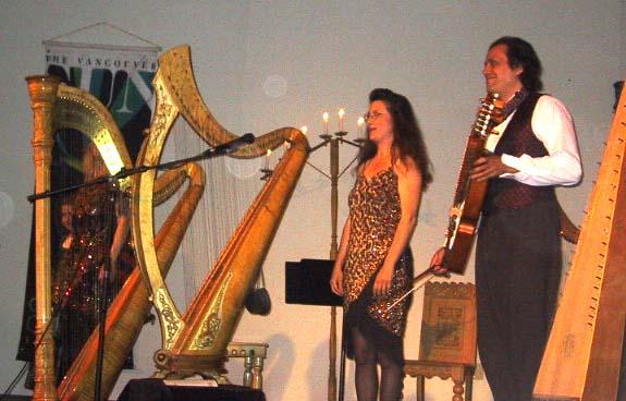 Geeseが群をなして我々に迫ってくる。中には私の足をくちばしでつついて餌を催促する。入口で50セントだすと餌を売ってくれたらしいのだが、うっかり買わなかったので、大変である。あ とできたカナダ人の女性たちはちゃんと買っていたけど、鳥達のしつっこさに悲鳴をあげていた。今はオフシーズンのはずで、鳥が居ないはずなのにと思いきや、簡単に餌にありつけることから、。住みついてしまったのだという。鳥が人間を襲うヒッチコックの映画「鳥」を思い出してしまった。ずっと奥にいくと、鉄塔のような展望塔があった。高所恐怖症をおして登ると、 帽子を押さえていないと飛んでしまうほどの強風で、恐る恐る見渡すと、一面の湿原で、向こうに雪をかぶった山々が望まれた。熱帯の方からアラスカの方に向かったりその反対方向に行く渡り鳥がここで骨休めと栄養補給をするには最適の場所のようだった。ハープ・コンサートの夕べ 6/9の晩、Horst夫妻が仲間の退職記念パーティに行く予定になっているのにハープのコンサートの券があるというので、行かせてもらった。地方のコミュニティ・センターだったが、丁度教会のようなこじんまりした場所で、観客もお互いに顔見知りみたいで、家族的な雰囲気であった。ハープの専門の女性は2人でそれに、変わった楽器をあやつる男性が一人と、ハープの女性の小さな子供が時々共演していた。途中でその子が一人でGreen