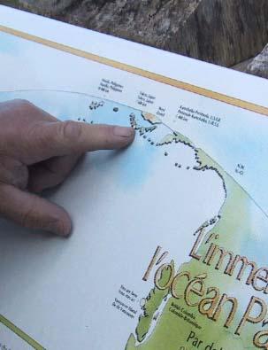 Rim 国立公園を動いてみる。左の地図はウィカニニッシュのビー チ展望台にあったもの。指のところが日本。写真の真下の所に今居る。この太平洋が日本とつながっている。「アッ向こうに日本が見えた」とHorstさんが双眼鏡を覗く。