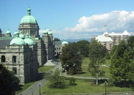 Gardensの持ち主のButchartさんの豪邸も並ぶ。しかしどういう訳かこの本邸の方には庭がほとんどない。この庭も20年く らい前にも訪ねたことがあったが、ほとんど変わっていない。ちょうど今が花の盛りで、気候も丁度良いし、多くの観光客で溢れていた。港から赤い2階建てのバスに乗って30分くらい、入園料も入れて40カナダドル(3200円)は高いのか安いのか分からないが、「華々しい」花の 色を見せるための庭だから、これでもかこれでもかとカラフルな光景が強烈に目の前に現れる。食堂までも緑と花の自然な飾り付けに囲まれている感じで徹底している。日本庭園は枯山水の庭の白石の敷いてあるはずのところが20年前は緑の芝生だっとと記憶しているが、今回は本物の白い砂利が敷かれ、鹿脅しもちゃんと音をたてていた。ここの食堂といってもカフェテリアなのに、きれいで、自分でトレイをもって テーブルまで運ぶ方式だが、チップもいらず、500〜700円もあれば満腹になる感じだ。緑に囲まれているので野外の、品のいいピクニックの雰囲気だ。でも曇りだったせいもあって、ウィンドブレーカーがいるほどの肌寒さだった。ホテルは州議事堂の横の道の真向かいEmbassy Hotel。ここは港が見渡せて、中心地なのに1泊2人で100カナダドル(8000円)だから、 安い。夕食も1500円くらいでうまい料理を食べさせる。州議会の議事堂がホテルのとなりにあった。一般に公開されていて、説明付きのツアーさえある。入口に警備員が居るが、入場料はいくらかと聞いたら、5ドルだという。すぐにニコッとして冗談だとわかる。そんなところで入場料をとることなどあり得ないのだ。夜になると議事堂の全体の輪郭に沿って配置された豆電球が一斉にともり、寒いくらいの港の海 風を浴びながら見入るのもロマンティックな気分にしてくれる。夕暮れと言っても9時過ぎになるので、その前に町を散歩してみた。板張りに白いペンキを塗った植民地時代を思わせる家々がきれいだ。海に囲まれている高台が多いので景色がいい。国道の起点近くに大きな公園と動物園があった。静かな森のような公園を歩いていくと、大きな池の脇に出た。水がきれいで縁に沿って咲いている花が水に映って見事なコントラストを作る。絵心がなくても思わず描いてみたくなるような景色に思わずシャッターを切る。 ふと近くを見ると青い大きな鳥が木彫のように動かずに遠くを下のアシカくんは動物園ではなく、やはりVictoria郊外の港で撮った1枚。ヨットがたくさん停泊している小さな港には自然にアシカが集まってくる。人が餌を与えてし まうから、楽に餌にありつけると思って寄ってくるのだ。鳥にしても、長い黒首のCanadian